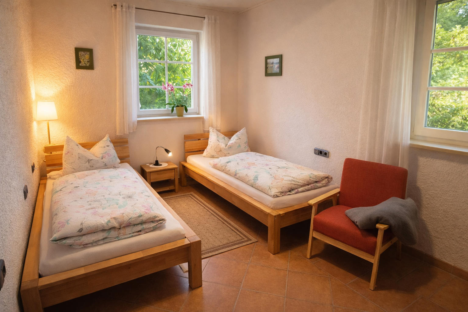 Außerdem stehen Ihnen kostenloses WLAN (Breitband), ein eigener Eingang sowie kostenlose Parkmöglichkeiten direkt am Haus zur Verfügung.